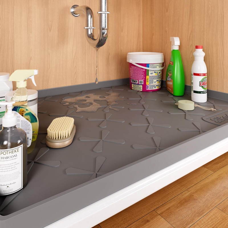 SIKADEER Thicken Under Sink Mat 34" x 22", Waterproof Food-Grade Silicone Tra...