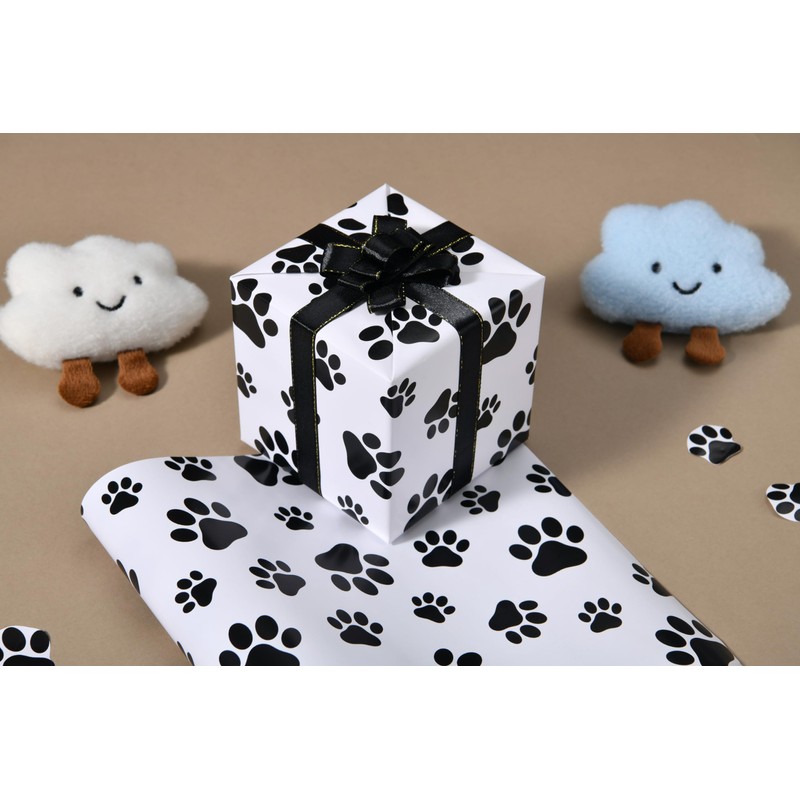 - Adorable Paw Print Design: Featuring a cute and playful black paw print pattern on a clean white background, this wrapping paper is perfect for pet lovers and animal-themed gifts.