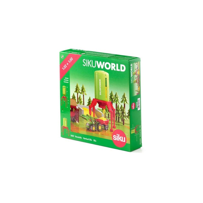 - Box contents: 1 x SIKU 5602 standing silo, scale: 1:32. Material: Plastic. Dimensions: 22.5 x 22.5 x 34.8 cm. Weight: 0.237 kg. Colour: green/red. Series: Siku World