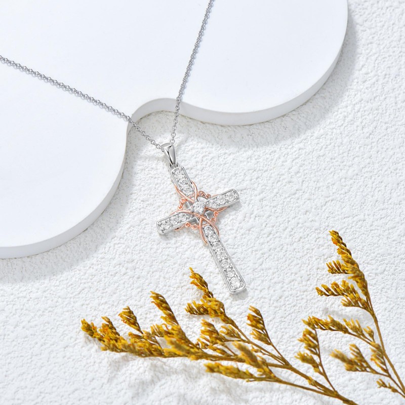 SILBAZ - Collar de cruz para mujer, colgante de cruz, joyería de aniversario, regalos de Navidad para esposa, mamá, Cobre, Sin piedra preciosa