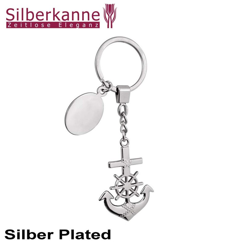 SILBERKANNE Key Ring Rudder and Anchor with Engraving Plate 11.5 x 4 cm Premium Silver Plated in Top Workmanship, silver