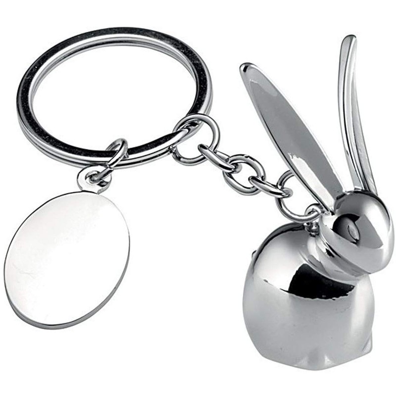 SILBERKANNE Rabbit Key Ring 10 x 3 cm with Plate Silver-Plated Premium Silver-Plated