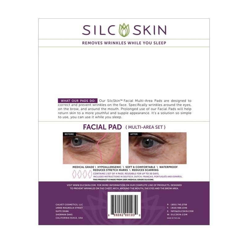 - Smooth away fine lines and wrinkles with the SilcSkin Facial Pad Multi-Area Set! These self adhesive pads prevent and help to reverse damage caused by the sun, aging, and sleeping on your side. The pads also gently exfoliate the skin of your temples, cheekbones, nasalabial folds, and other tricky facial areas. After two to four weeks of nightly use, you can transition to a lighter schedule, as the effects become more lasting from repair to the collagen structure itself.