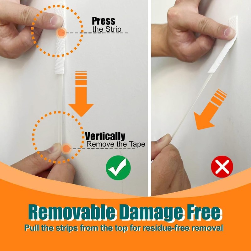 - Damage-Free Removal – Pull down slowly to remove without harming walls. Reposition or reuse with ease.