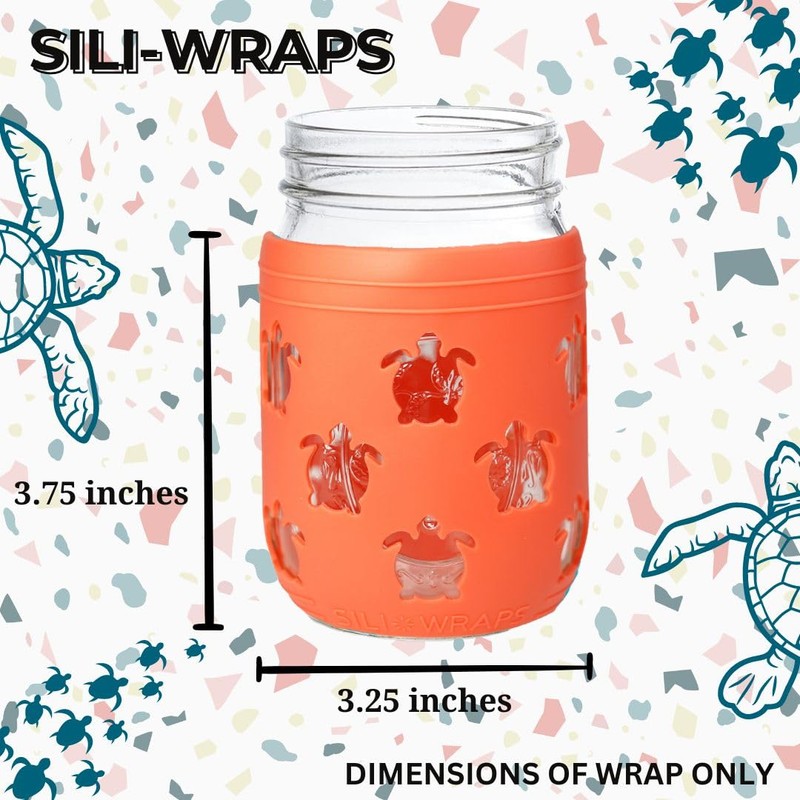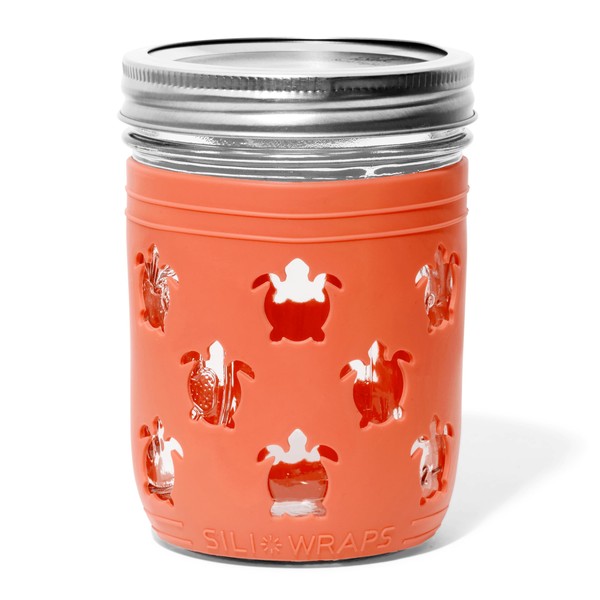Sili Wraps Mason Jar Wraps, Silicone Sleeve Protector For 16oz Regular & Wide Mouth Mason Jars, Decorative & Resistant Jar Jackets, Set of 4 Sleeves, Coral Turtle