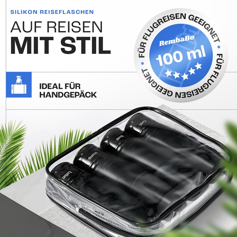 - ✈ 100ML TRAVEL BOTTLES - IDEAL FOR AIRLINE & ON THE GO ✔ TSA COMPLIANT: Safe for carry-on & air travel ✔ Set of 4 bottles (100ml) - Perfect for shampoo, conditioner, lotion & more ✔ Includes clear premium travel bag for stress-free security checks