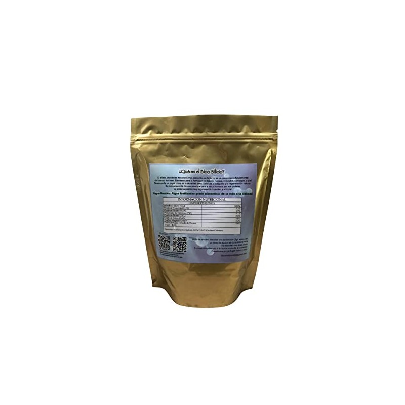 - Ingredientes: Silicio. Algas fosilizadas grado alimenticio de la más alta calidad.