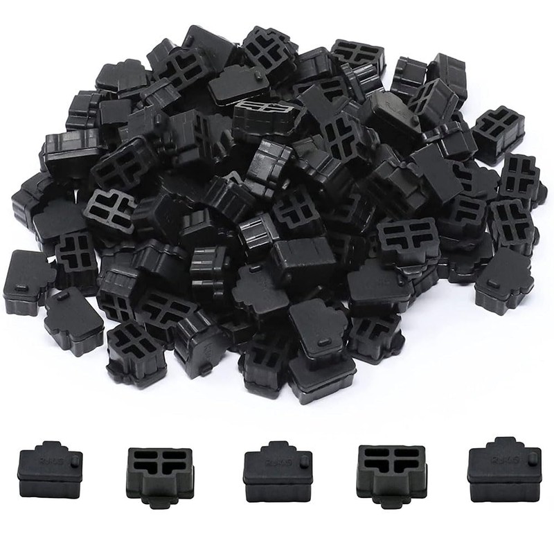 - 【Package Content】: 100 x Black RJ45 anti-dust covers caps. Color : Black. Size (L*W*H): 0.47'' x 0.39'' x 0.27''.