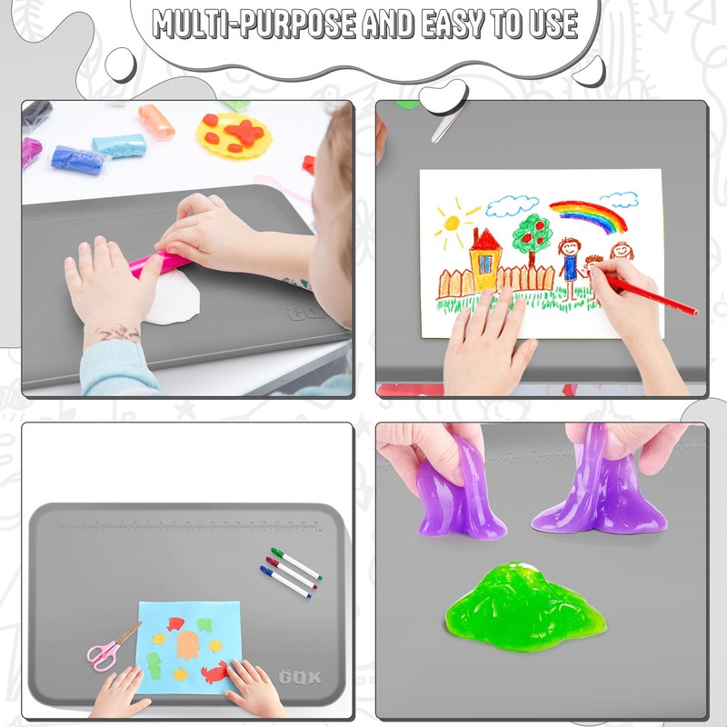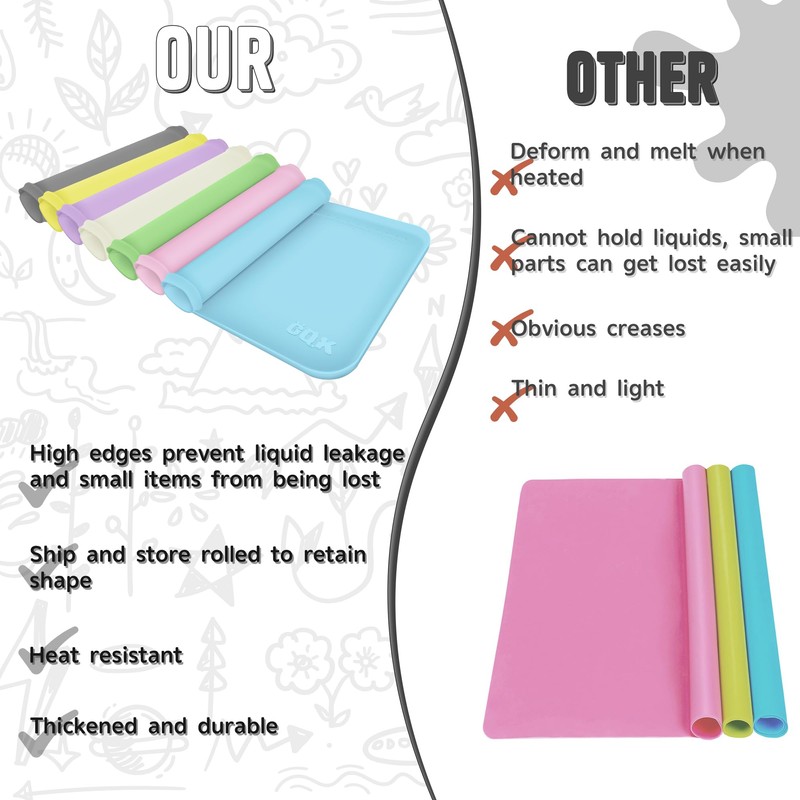 • 【Multi-Purpose & Easy To Use】The mat can serve as a painting mat, a DIY craft mat, a art mat for kids, placemats, a silicone game mat, a heat-resistant pad, and a pet feeding mat. It is suitable for various activities, including clay work, paper cutting, resin pouring, slime crafting, jewelry-making, and other crafts