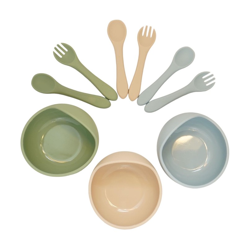 Introducing the ultimate silicone baby feeding set, designed to make mealtimes a breeze for both you and your little one. This set includes three spacious 12 oz bowls with a suction base that securely sticks to surfaces, making it easier for early self-feeders to scoop up their food. The set also comes with three spoons and three forks, ergonomically crafted with flexible, smooth edges to cater to your baby's feeding needs and encourage self-feeding as they grow. Crafted from 100% food-grade silicone, this set is free from harmful substances, PVC, and BPA, ensuring your child's safety. The bowls, spoons, and forks are dishwasher-safe, microwave-safe, and freezer-safe, making them incredibly easy to clean and maintain. With their durable and flexible construction, this feeding set is built to withstand the rigors of daily use, making it a practical and long-lasting investment for your baby's mealtime needs.