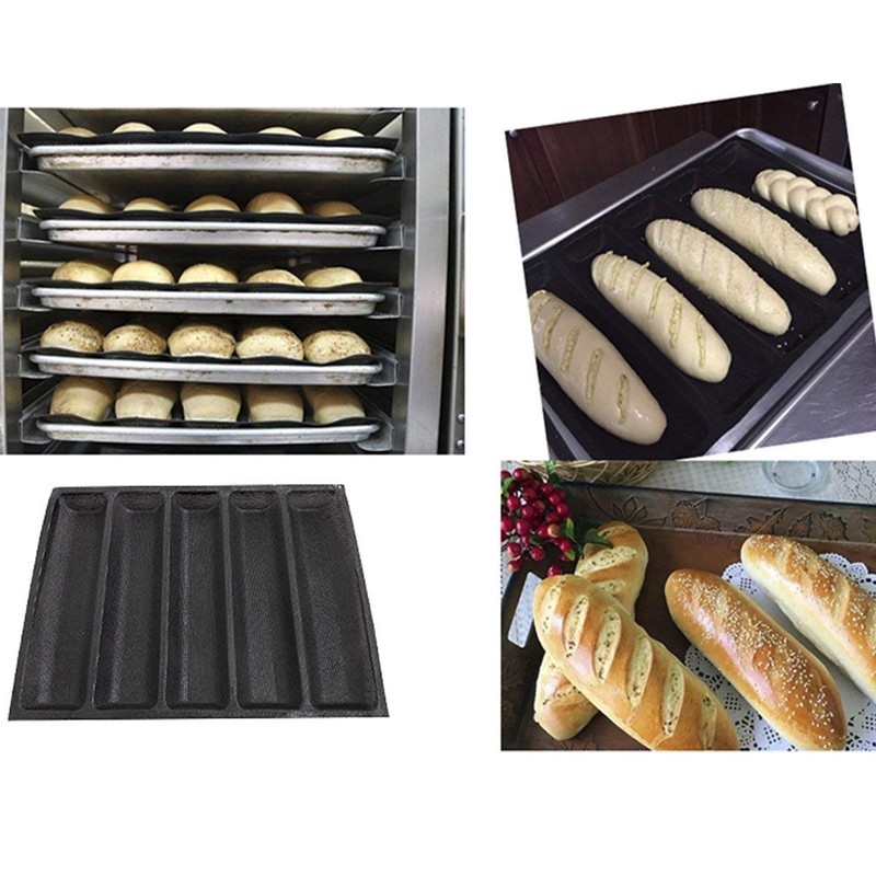 Silicone Baguette Pan - Non-stick Perforated Fench Bread Pan Forms , Hot Dog Molds , Baking Liners Mat Bread Mould (5 Loaf, Black)