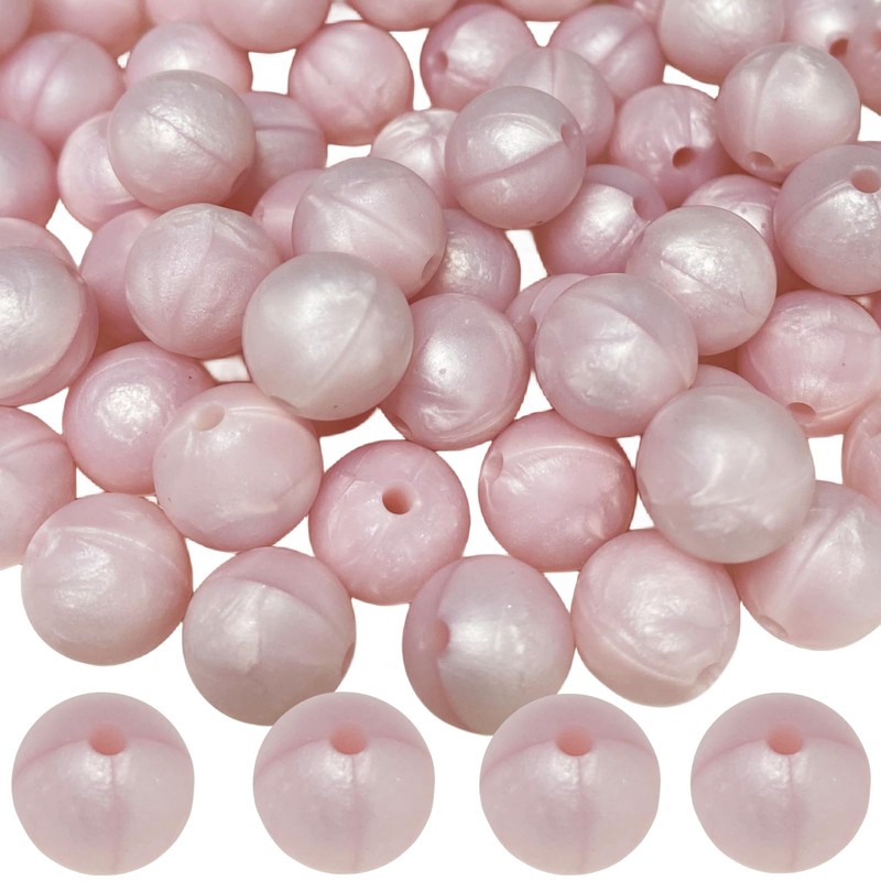 Silicone Beads, 70pcs 12mm Silicone Beads for Keychain Making Bulk Round Silicone Beads Rubber Loose Craft Beads for Bracelet Necklace Earring Jewelry DIY Crafts Making (Pearl Pink)