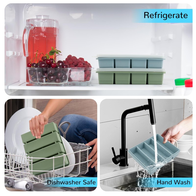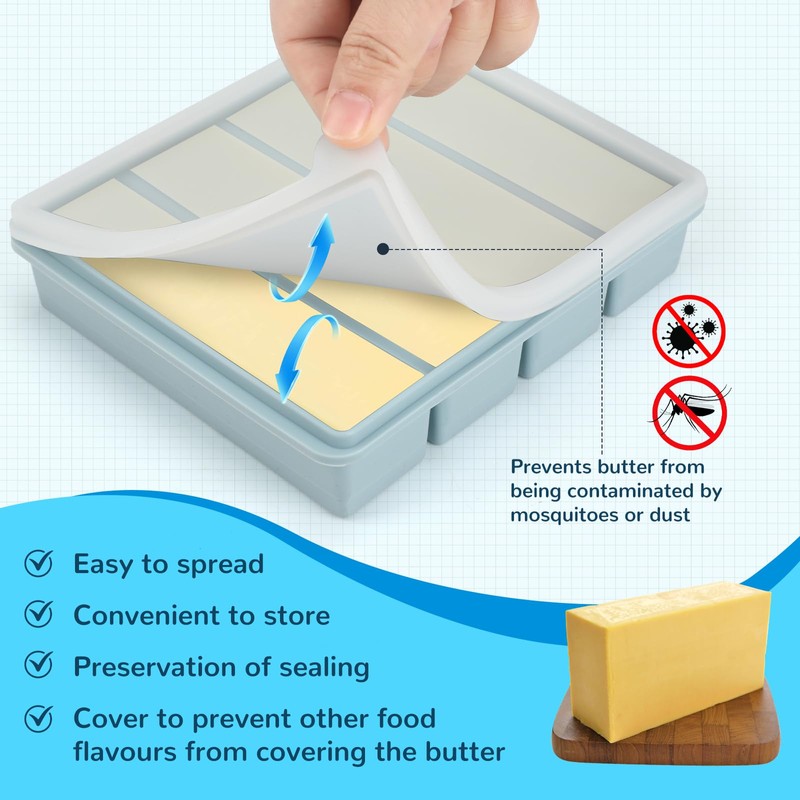 - Butter Release Guaranteed: Flexible non-stick surface makes popping out homemade butter sticks effortless - no greasing needed! Hand/dishwasher wash in seconds. Each cavity holds 8 tablespoons (1/2 cup), with a convenient lid for long-term storage and freshness.