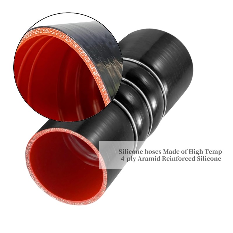Silicone hoses Made of High Temp 4-ply Aramid Reinforced Silicone,with good wear resistance, high-temperature resistance, and corrosion resistance, can be used for a long time.