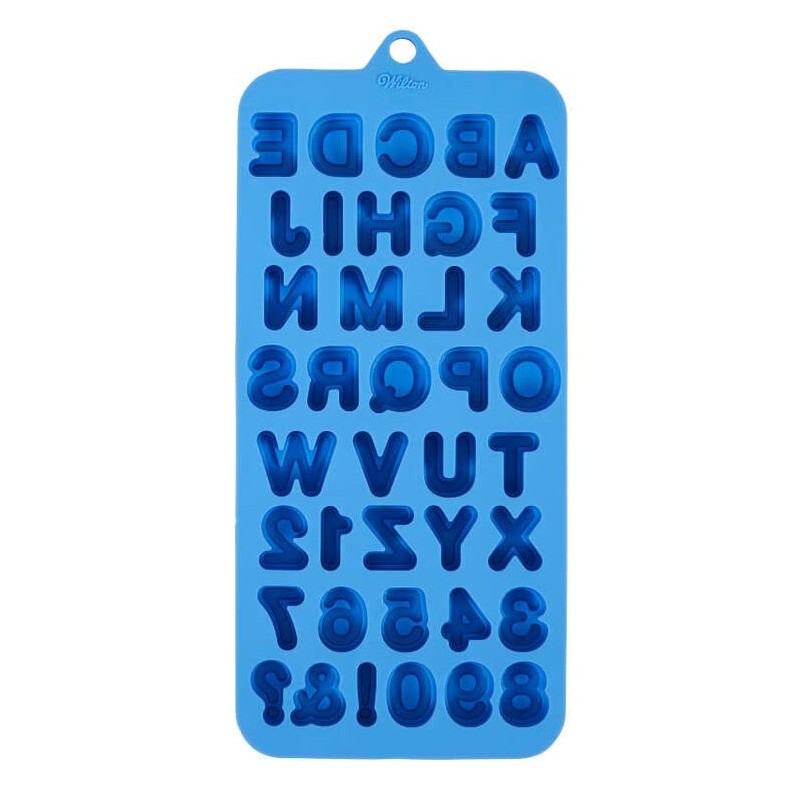 Brand new, Wilton Silicone Letters and Numbers, 39 Cavity Candy Mold, 2115-0-0111. Say it with candy with this fun silicone mold. It features the entire alphabet, numbers 0-9, an exclamation point, an ampersand and a question mark. Perfect for using with Candy Melts candy, ice, gelatin or other treats. To make candy, fill each cavity with melted chocolate or Candy Melts candy, then let set. Once cooled, your candies can be removed and enjoyed however you like! You can also use this mold to make your own gummies, soap bars or shaped ice cubes!