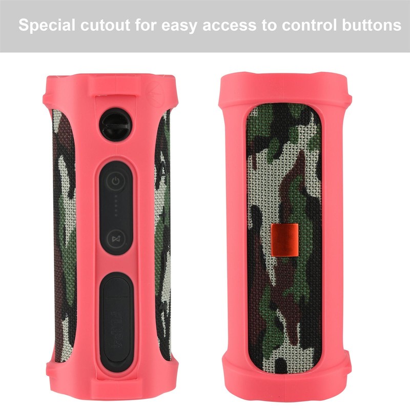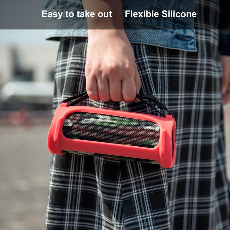 1、Simple and protective Storage: Silicone protective case pouch compatible for JBL Flip 4 wireless speakers, compact and lightweight provide perfect protection to your beloved speaker. 2、 Small bluetooth speaker sleeve: Durable Silicone material, sturdy and durable, It provide a perfect protection to your speaker, prevent it from scratch, bumped and dropped, keep it fit snug and securely. It can add an extra layer of protection when use it with compatible for jbl flip 4 hard case. 3、 Accessible design:This soft skin rubber case has customized press button icons for Bluetooth, power on/off, You can charge and play music when you use the case, it will not affect the sound quality. 4、 Convenient design: It is mainly designed for outdoor easy carrying, it design with 2 hooks on the side, with this rubber loop you can attach the speaker to almost anything 5、 Practical: You can buckle the shoulder strap, easy for you to carrying it anywhere, comes along with a carabiner convenient for you carrying it to backpack, bike and more, no matter what you are hiking, clamping and so on.