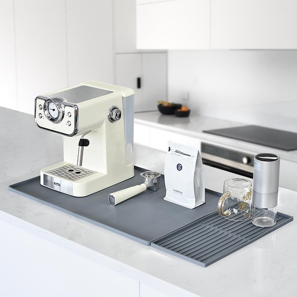 Silicone Coffee Mat 24'' x 16''Coffee Bar Mat with Raised Edge and Detachable Dish and Cup Drying Mat For Kitchen Countertop Coffee Bar Accessories Coffee Maker Machine Mat (Gray, 24''x16'')