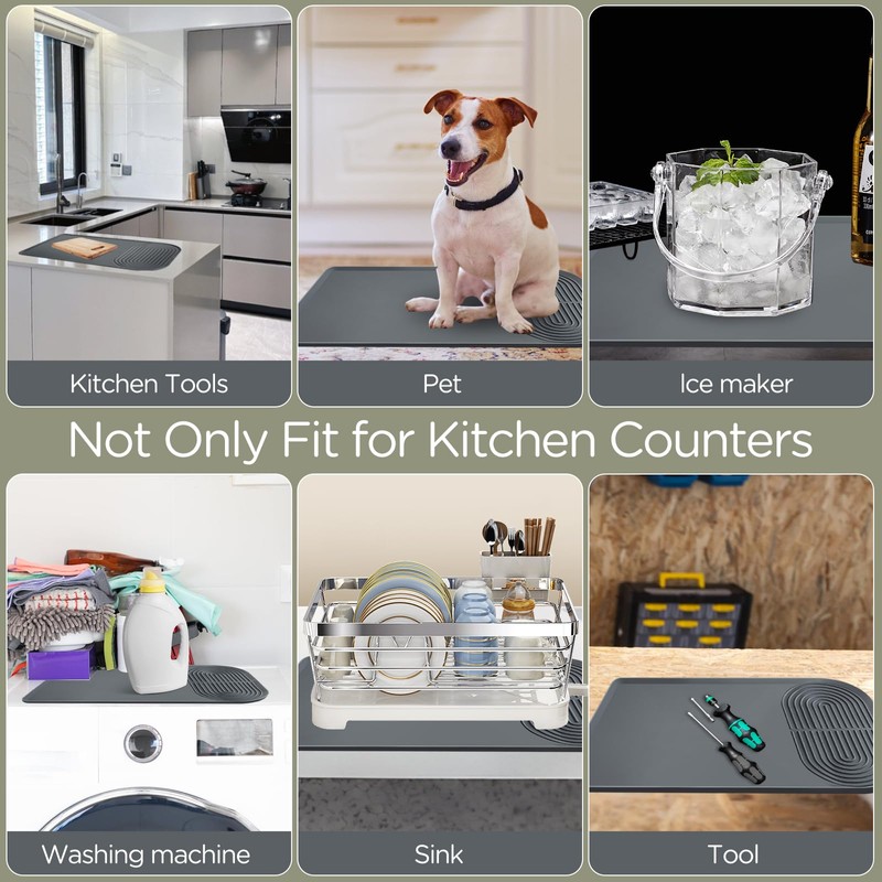 - 【Wide Application】: This coffee mats for kitchen is not only fit for kitchen counters, coffee bars, sinks, tableware storage tables. Besides can also be used as a pet feeding mat, tool mats, an access door mat, a heat insulation mat, craft mats and any other occasions for you want to used. It'll providing you with a comfortable and convenient way to keep your counters or floors healthy and clean state.