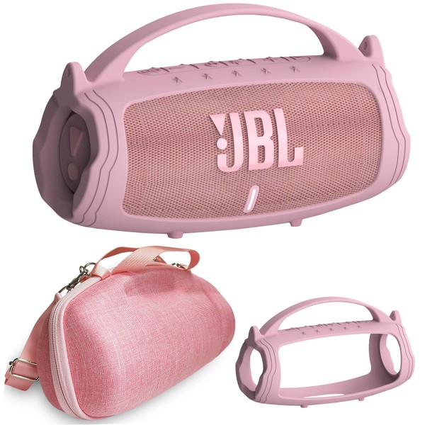 Silicone Cover and Travel Case for JBL Charge 4 / Charge 5 Portable Bluetooth Speaker, Accessories Case for JBL Charge 5 / Charge 4 Speaker (Pink Case)