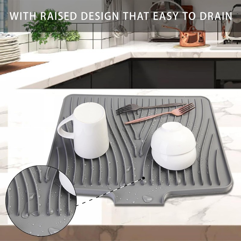 - 【High Quality Silicone Material】The Dish Drying Mat is well made with silicone material which soft and flexible, durable for long time to use