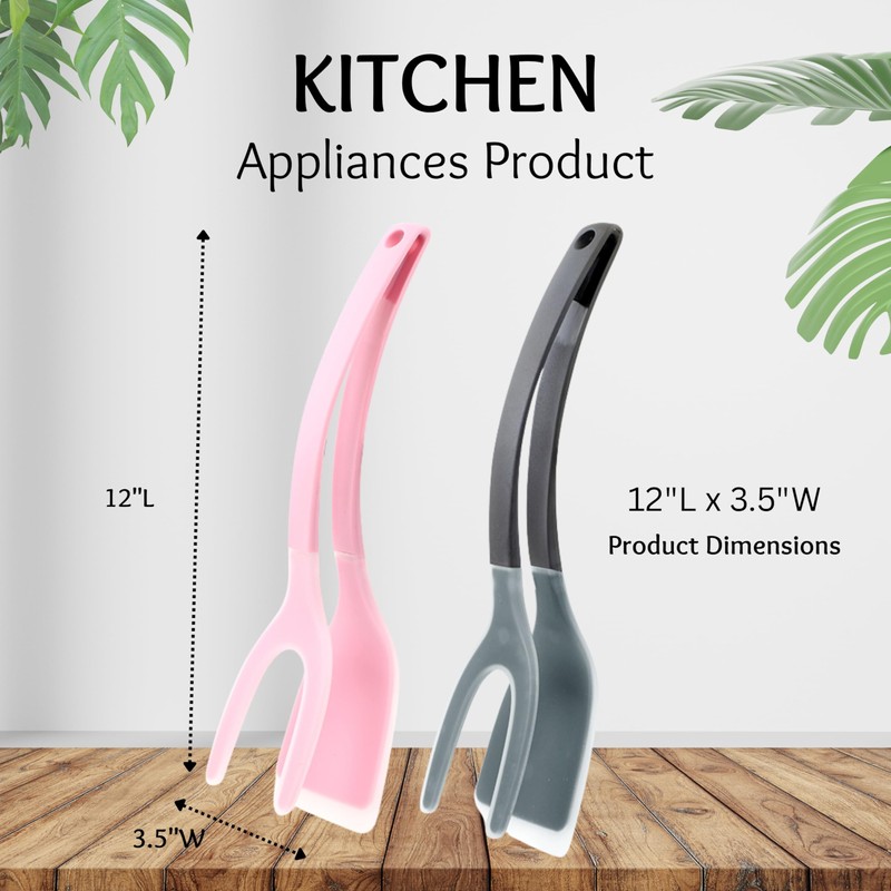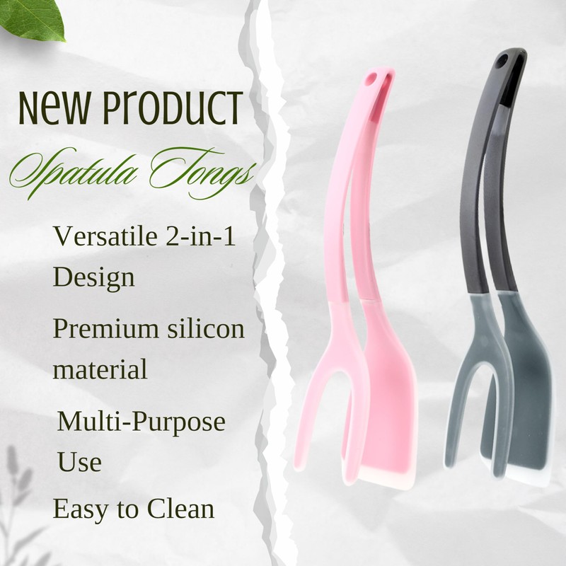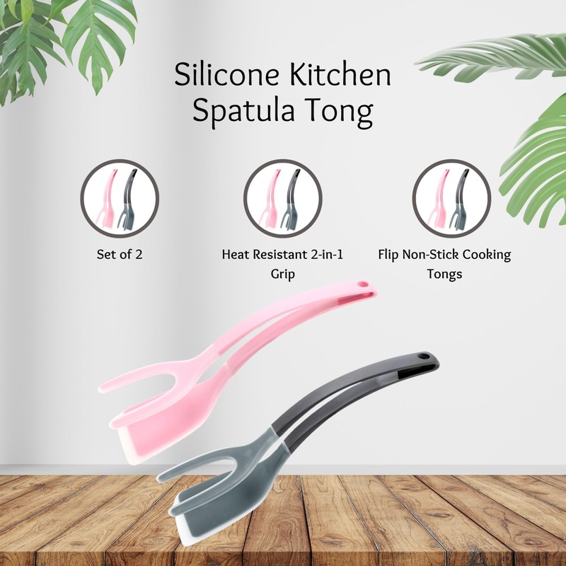 Silicone Kitchen Spatula Tong (Set of 2) – Heat Resistant 2-in-1 Grip & Flip Non-Stick Cooking Tongs for Pancakes, Fish, Eggs, and More – Kitchen Tool Set (Black + Red)
