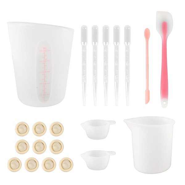 1、Convenient Pipette: The pipette is ideal for quickly and easily transferring resin from the original container to the mixture. 2、With Gloves And Measuring Cup: With 10 finger gloves for preventing liquid contamination of the skin. Measuring cups allow you to better control the amount. 3、Resin Cup: Ideal for mixing small amounts of liquids, resins, and paints, with a long, deep nozzle design for precise transfer purposes. 4、Silicone Spatula: Our spatula is made of silicone material, non slip, non stick, high temperature resistant, easy to peel resin, safe and non toxic. 5、Widely Applicable: Silicone measuring cup tool kit, when the resin is dry, you can just peel it off. Suitable for mixed resin, paint and resin crafts, etc.