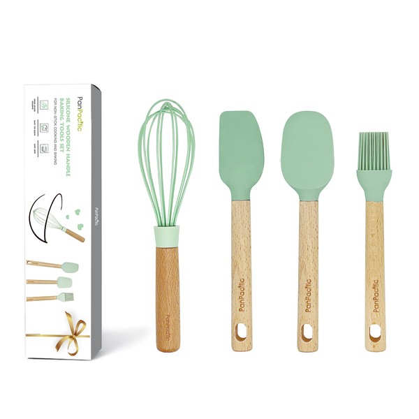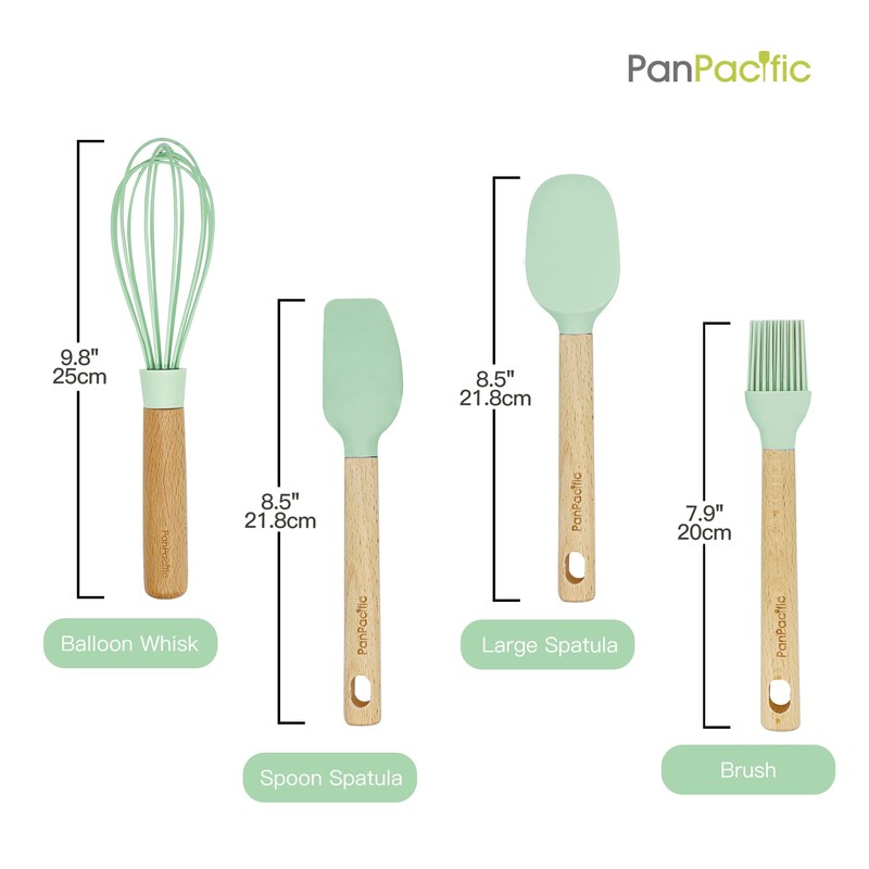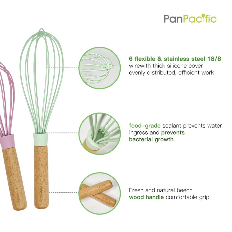 - ★ UNIQUE INNOVATIVE PRODUCTS DESIGN—— the head and handle of PanPacific silicone spatula, spoon spatula and oil brush are designed without glue connection! Due to the Elasticity of the silicone, the wooden handle is tightly wrapped after being inlaid into the silicone head, and there is no trouble of the handle falling off; And our SILICONE WHISK is designed to be seamless and watertight!