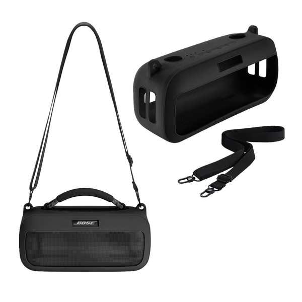 Silicone Protective Case Suitable for Bose SoundLink Max Portable Speaker, Portable Suitcase Protective Case with Shoulder Strap Protective Case Wireless Speaker Accessories (Black)
