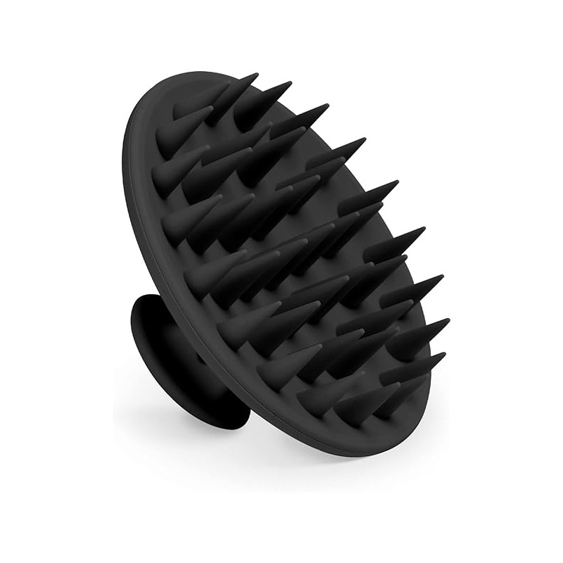 Silicone Scalp Massager Shampoo Brush, Scalp Brush for Hair Growth & Dandruff Removal, Hair Scrubber Scalp Stimulator Exfoliator Brush with Soft Bristles for Wet Dry Scalp Care (Black)