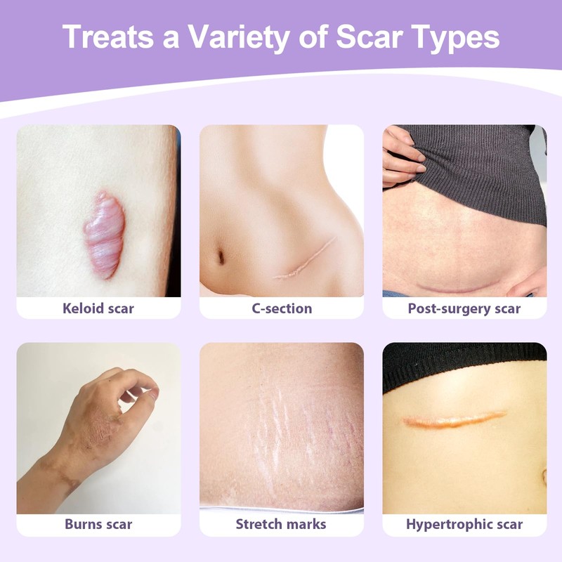 Scar Application: Targets new and old scars, including keloid bump removal, stretch marks removal, acne, burns, C-section scars, and surgical incisions