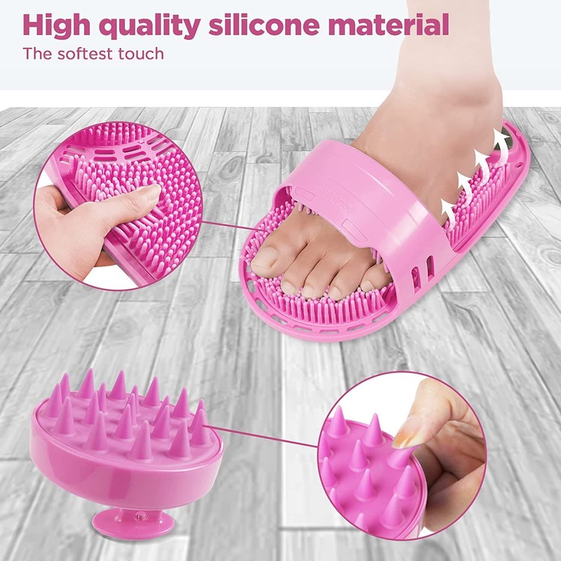 Silicone Shower Foot Scrubber, Shower Body Scrubber and Hair Scalp Massager, Personal Shower Cleaning Kit for Men and Women, Bathing and Scrubbing Suit, Purple