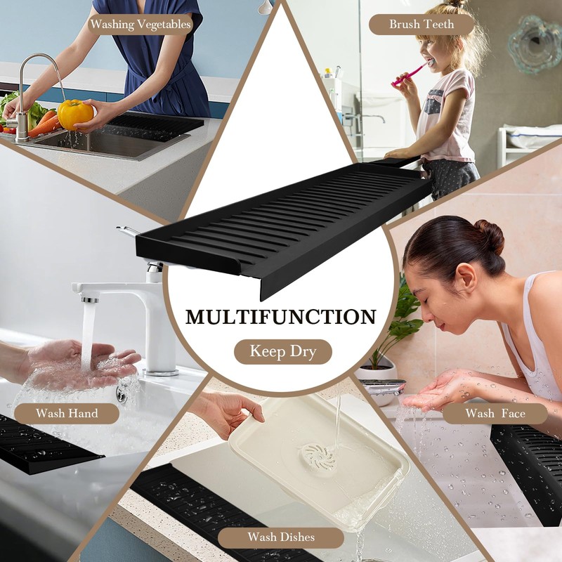 - 5 Degree Tilt Design:Our sink splash guard features a 5-degree tilt that redirects water back into the basin, preventing splashes on clothes and countertops.It allows faster water drainage and drying,keeping your workspace clean and dry