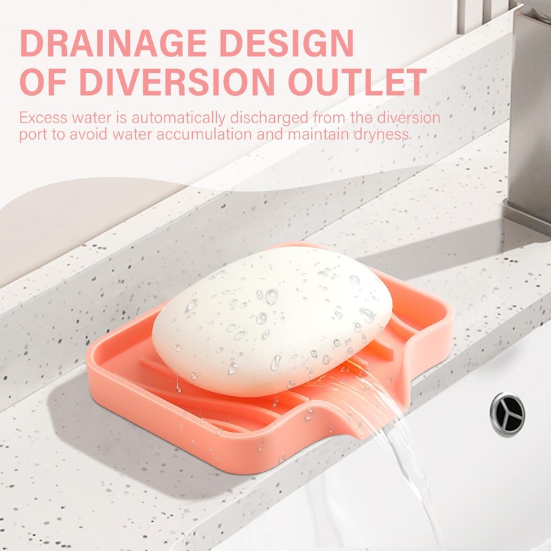 Purpose: The main purpose of this soap dish for bathroom is to hold soap or bars of soap, the self-draining design removes excess water and prevents soap from pooling, helping to keep soap dry and prolonging its life. Please clean the soap holders regularly to remove soap scum. You can simply rinse them with water or wipe them with a damp cloth. The silicone soap tray is also dishwasher safe and easy to use.