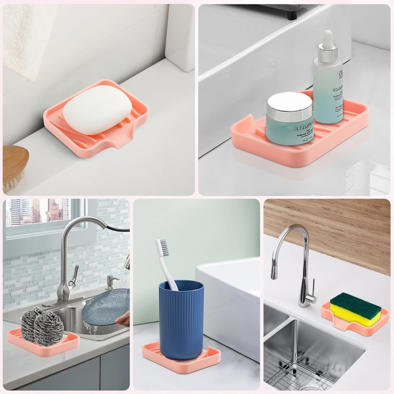 - Silicone Soap Holder: Pack of 2 soap tray for kitchen counter is made of soft and comfortable silicone, durable, flexible and elastic, unbreakable, easy to clean, bendable and non-deformable.