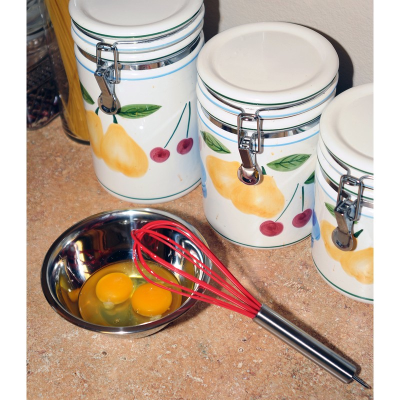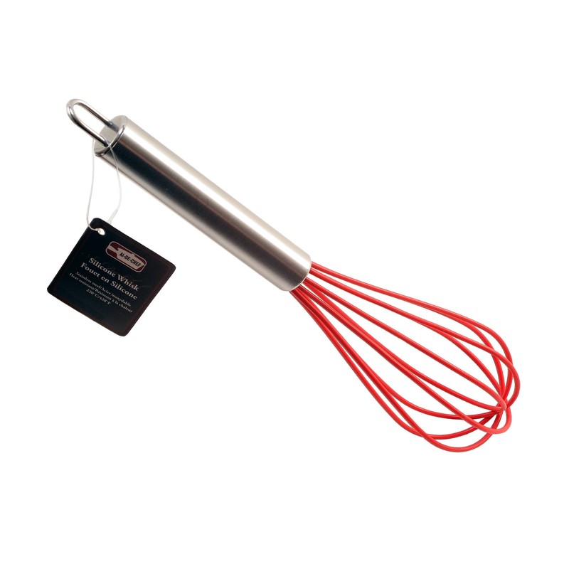 BEAT IT: Whis this Ai-De-Chef silicone baloon whisk you can beat eggs, whip cream, stir batter, and even stir and mix your warm sauces. Made with a comfortable ergomomic design that just feels "right" in your hand when cooking or baking. Includes ring hole to hang it up after you are finished.