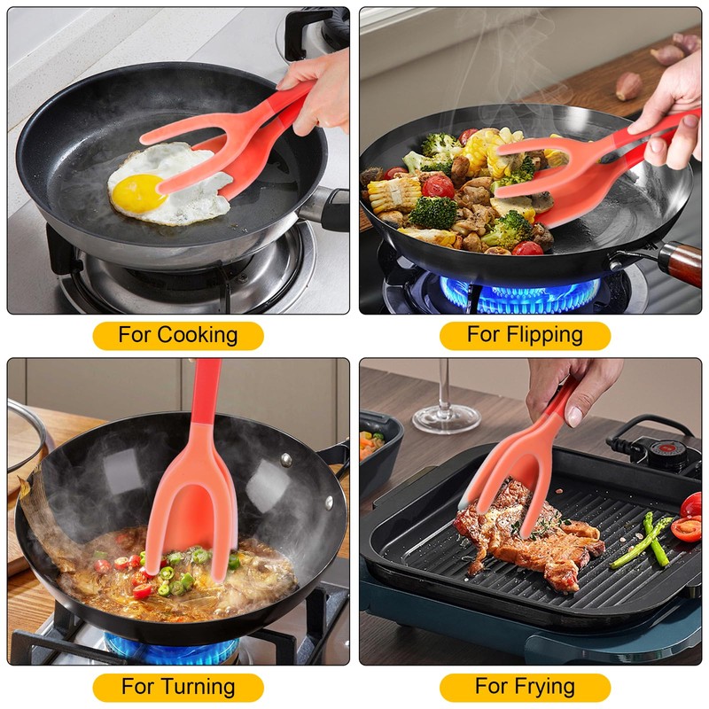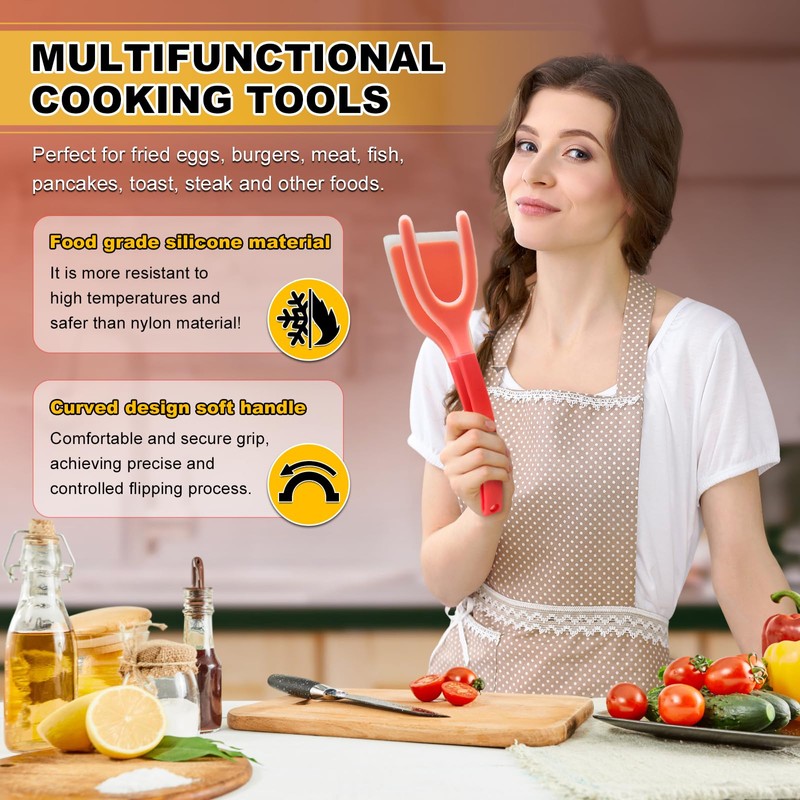 Silicone Spatulas, High Heat Resistant BPA Free Cooking Tongs, Silicone Kitchen Utensils, Spatula Tong, Egg Flipper Spatula for Non Stick Frying Pan, Ideal Cookware for Fish, Eggs, Pancakes
