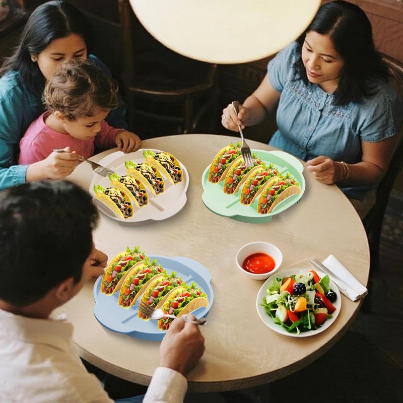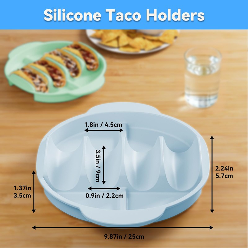 • Ergonomic Design Prevents Messes: ZCJSHX Silicone Taco Holders Set of 2 Food-grade silicone slots cradle tacos securely without sharp edges. ZCJSHX taco holder Contoured shape inspired by natural hand support prevents shell breakage and filling spills. ZCJSHX taco plates Reinforced base resists bending for steady one-handed use.