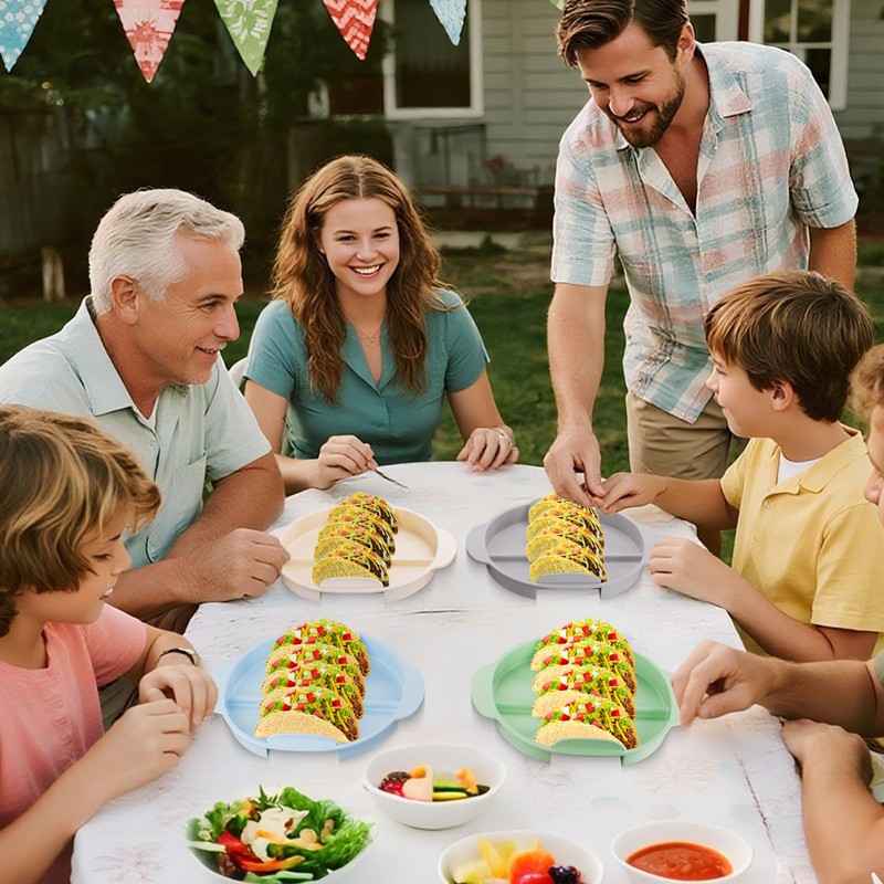 • Food-Safe & Reusable: ZCJSHX taco plates with dividers BPA-free silicone withstands extreme temperatures (-40°F to 446°F). ZCJSHX silicone taco holder Dishwasher-safe and more durable than disposable alternatives. ZCJSHX taco holder plate Stackable design saves storage space.