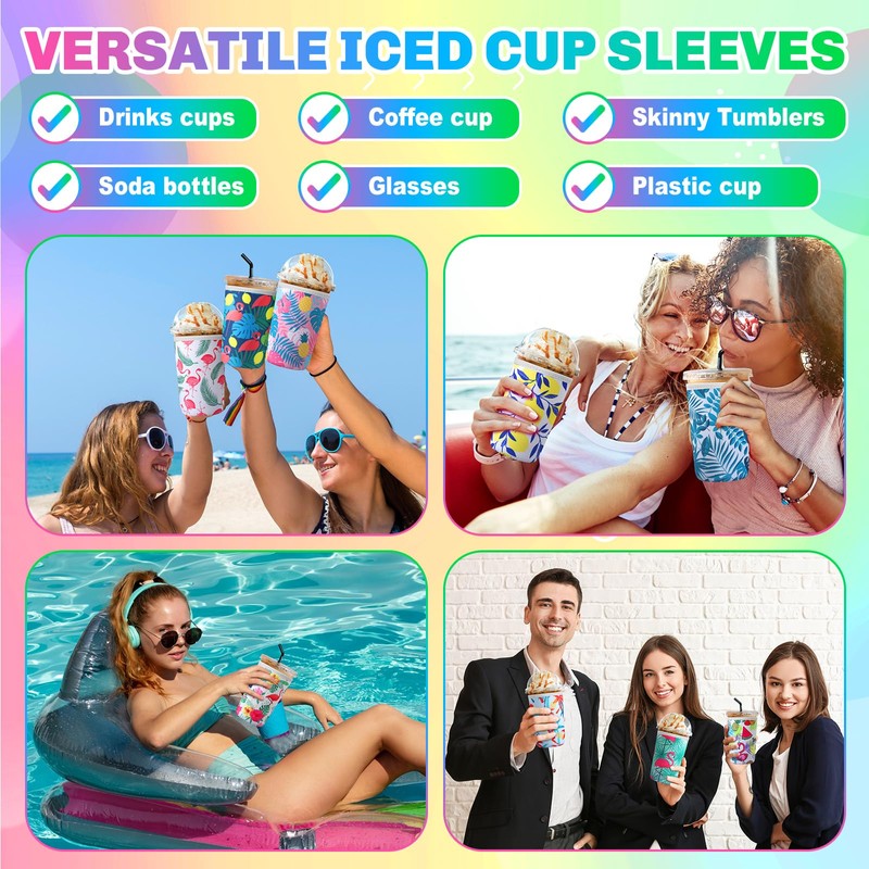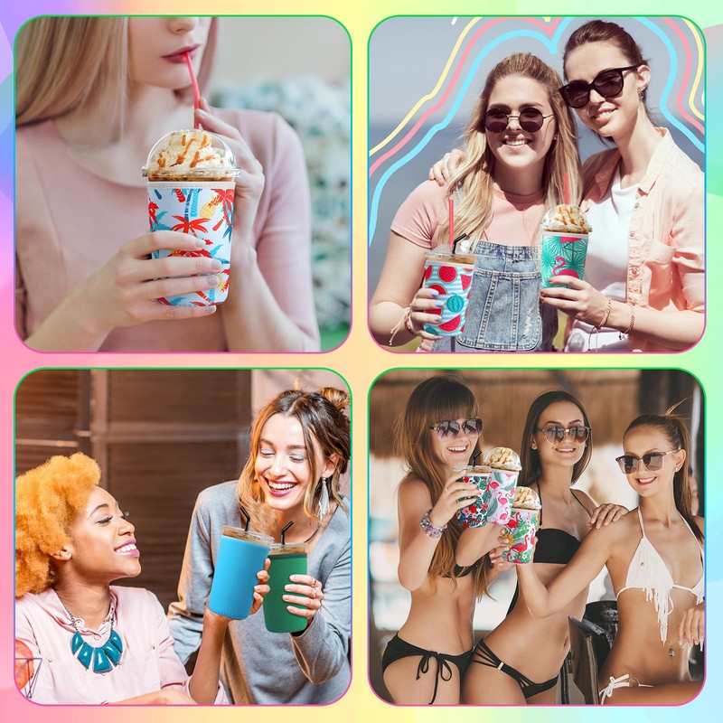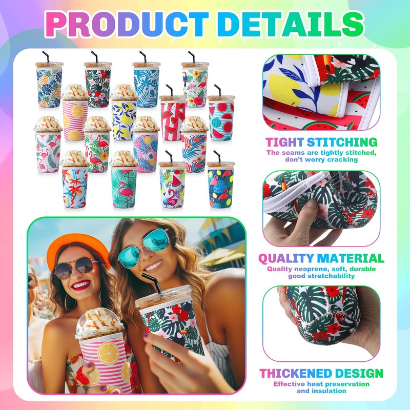 - Colorful Cup Sleeves: you'll receive 16 funny iced coffee cup sleeves, tropical Hawaiian themed patterns; Beautiful decoration for colorful summer parties; Drink cup sleeves can be used to distinguish multiple drinks
