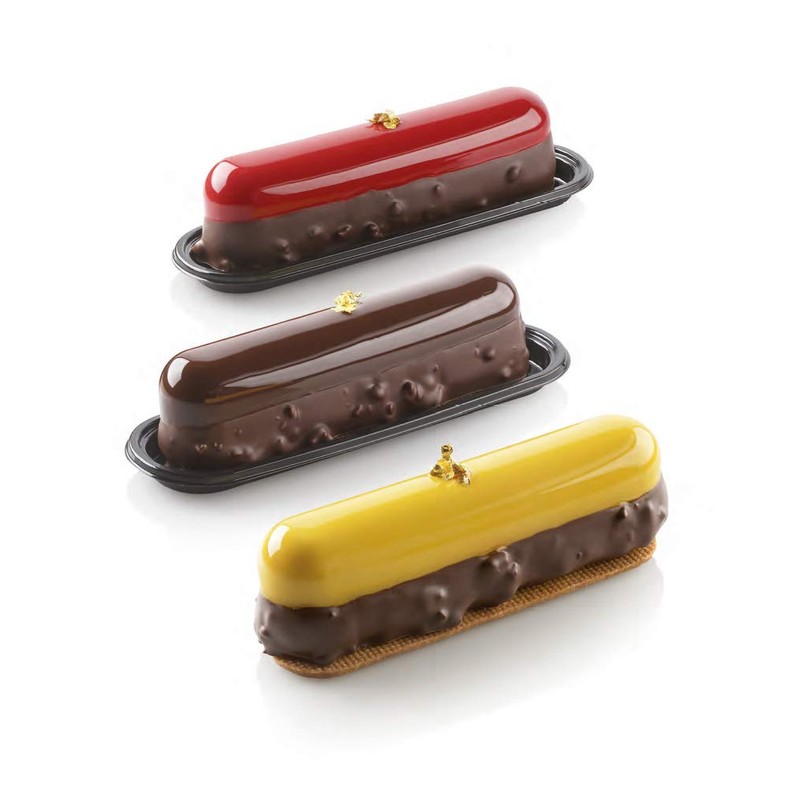 - Also included in L’Éclair120 are 10 trays on which to display and serve the finished food products made in the mold; volume each cavity of L’Éclair120 4.06 ounce (120 milliliters); size each cavity of L’Éclair120 5.31 inch x 1.10 inch x 1.46 inch high (135 millimeters x 28 millimeters x 37 millimeters x high)