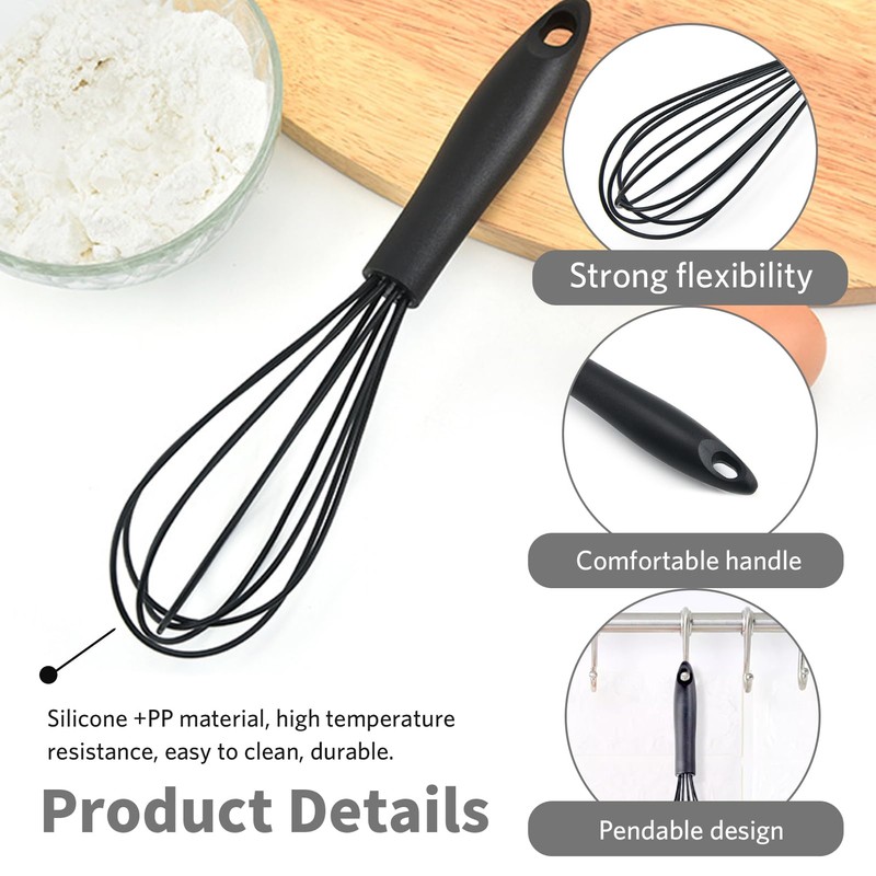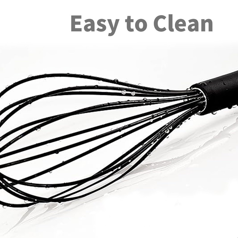 Silikon Schneebesen für die Küche,Lebensmittelechtes Material,Antihaftbeschichtet,Stabiler Griff,Zum Mischen, Schlagen, Aufschäumen und Rühren,Schwarz