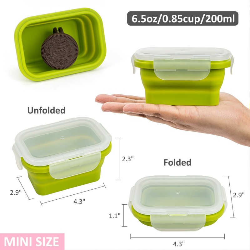 SiliSea Collapsible Snack Containers With Lids,Collapsible Food Storage Containers,Mini Fridge Organizer,Microwave Freezer Dishwasher Safe(6pcs,6.5oz)