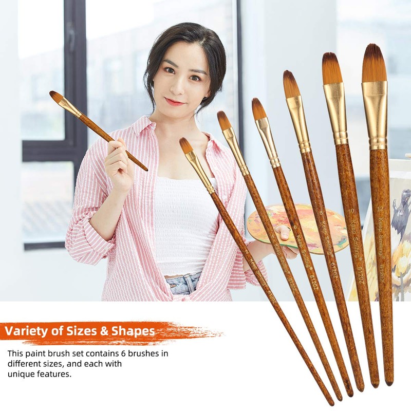 Silithus Paint Brushes 6 Pieces Set, Professional Fine Tip Paint Brush Set Round Pointed Tip Nylon Hair artist acrylic brush for Acrylic Watercolor Oil Painting (Oval)