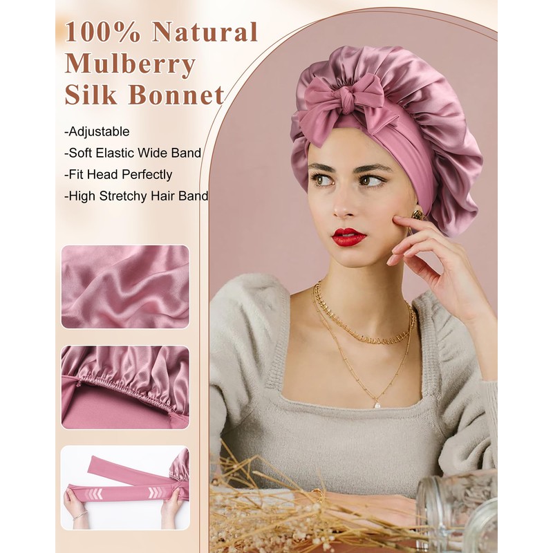 - 100% Mulberry Silk Bonnet: Made of 100% natural mulberry silk,soft and smooth, effectively reduces friction, protects your hair from damage, keeps your head dry and comfortable, and is suitable for use all year round