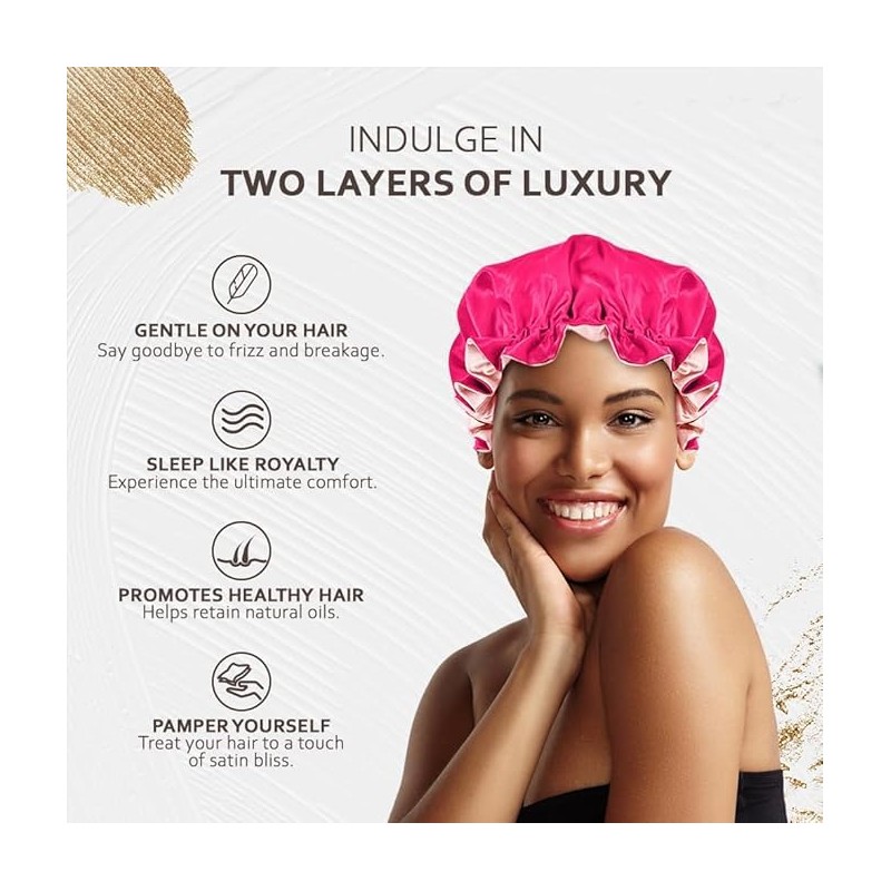 • 👒【Comfortable Fit】: The bonnet is designed to fit comfortably on the head. It doesn't feel too tight or restrictive, allowing you to sleep soundly without any discomfort. The silk material also provides a soft and gentle touch against your skin.
