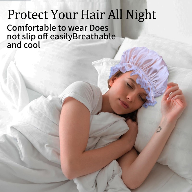 - MULTIPURPOSE - In addition to night use, this satin bonnet is perfect for washing your face, applying makeup, showering and doing housework. The stylish design also complements your sleepwear and other activities around the house.