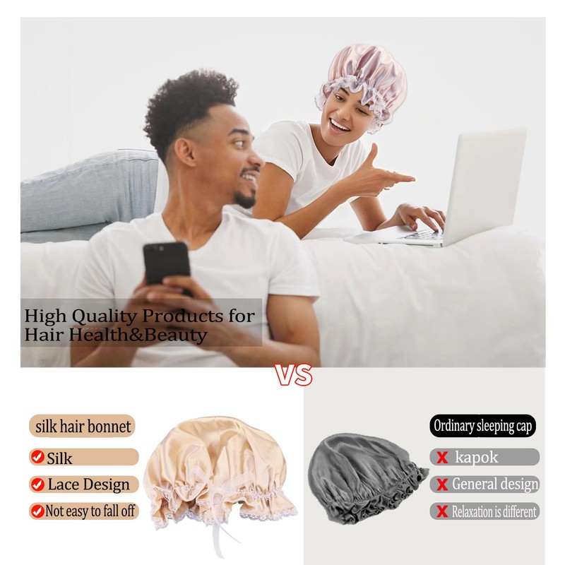 - BEAUTIFUL DESIGN Our silk bonnet features a unique lace design with a royal luxury style, wear it safe and beautiful feel like an old princess. It will not fade or discolour pillows or bedding. Suitable for women of all ages. Can be worn all year round.