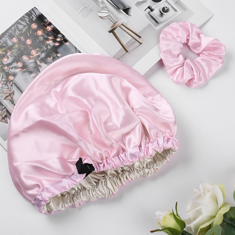 Silk Bonnet For Sleeping Women - Large Elastic Band, adjustable, double layer Blushpink 1PCS