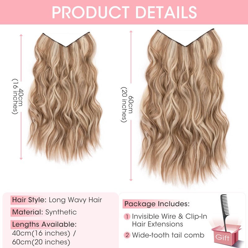 • Damage Free Application Our hairpiece does not require glue, clips and tape, just an invisible wire that makes the hair extension damage free and pretty.