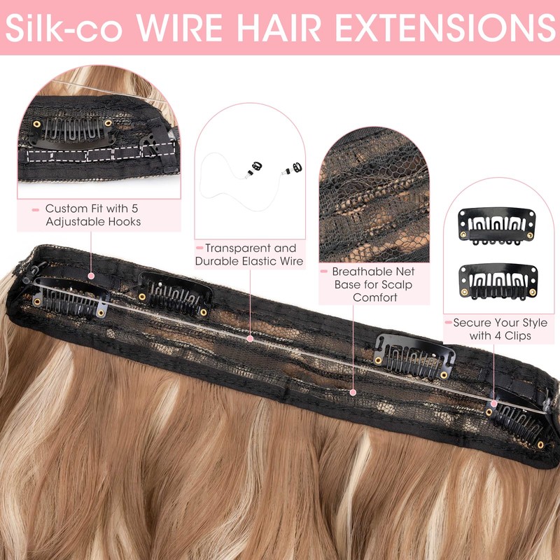 Silk-co Hair Extension with Elastic Band, Adjustable Secrets Hairpiece, Synth...